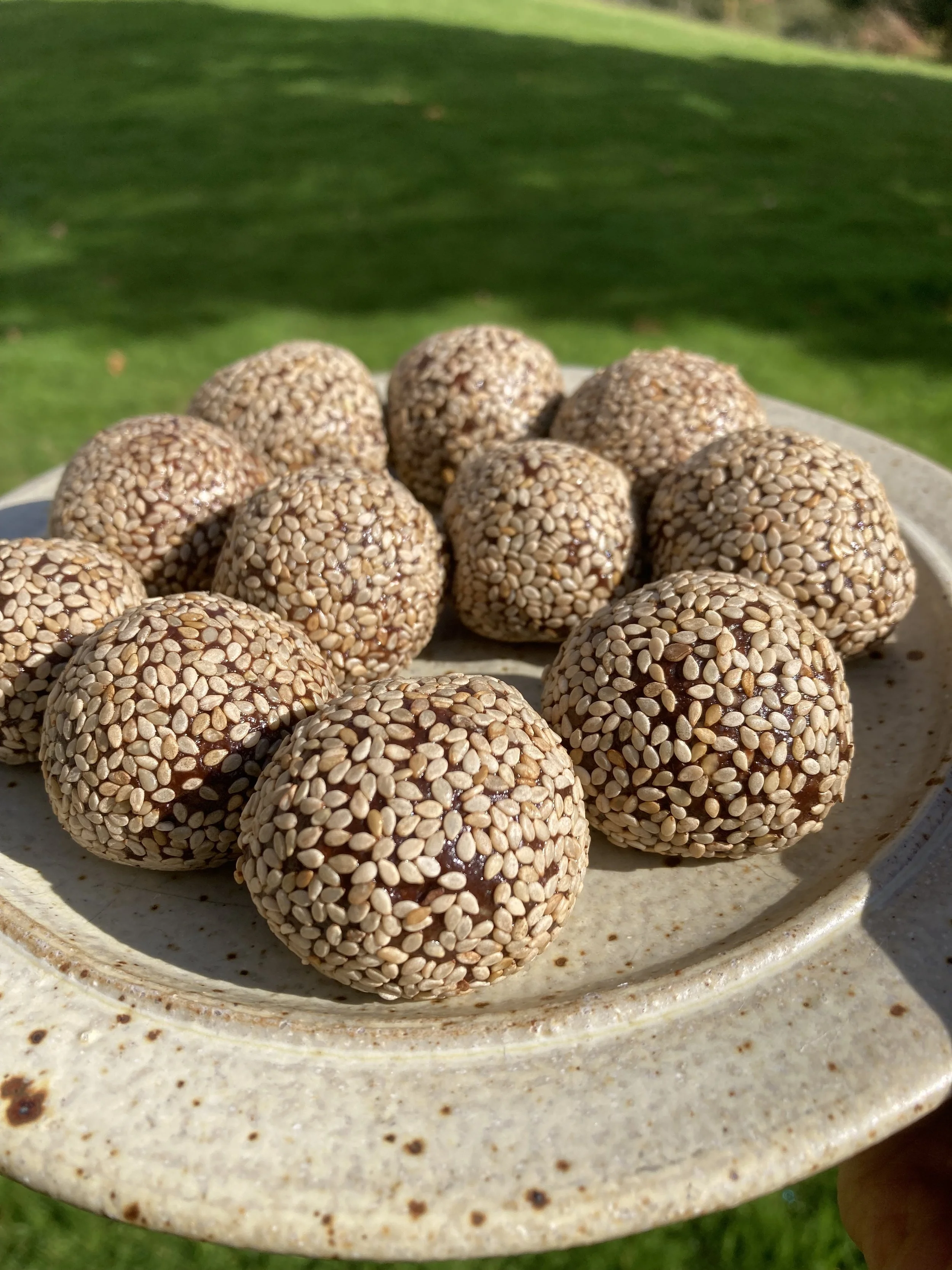 Shape into balls and roll in the sesame seeds.